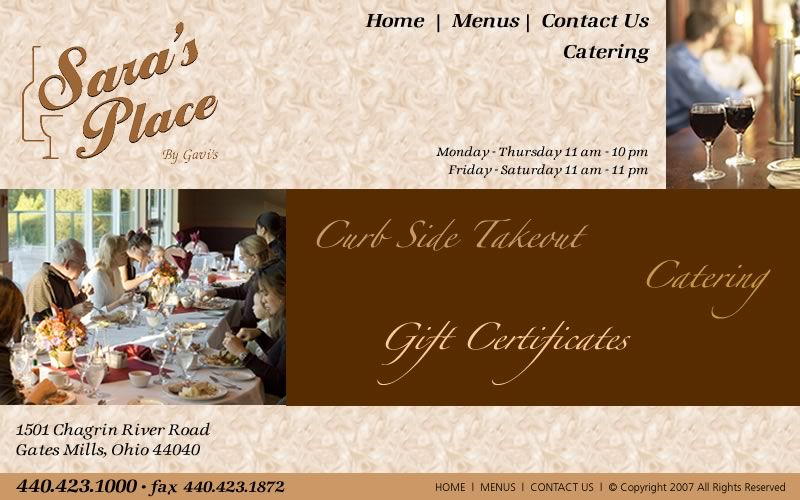 HomeMenu Contact Sara's Place Home Menus Contact Sara's Place Catering Menu Catering Menu